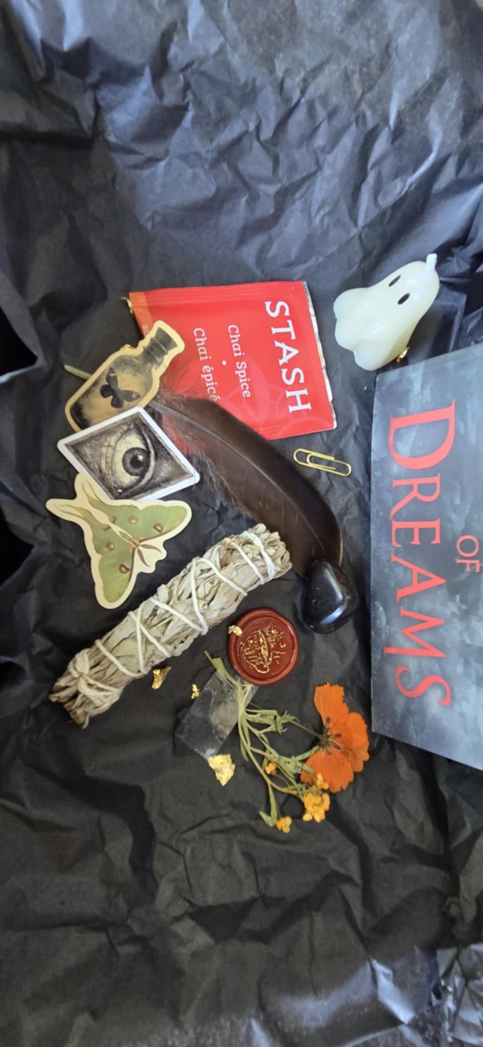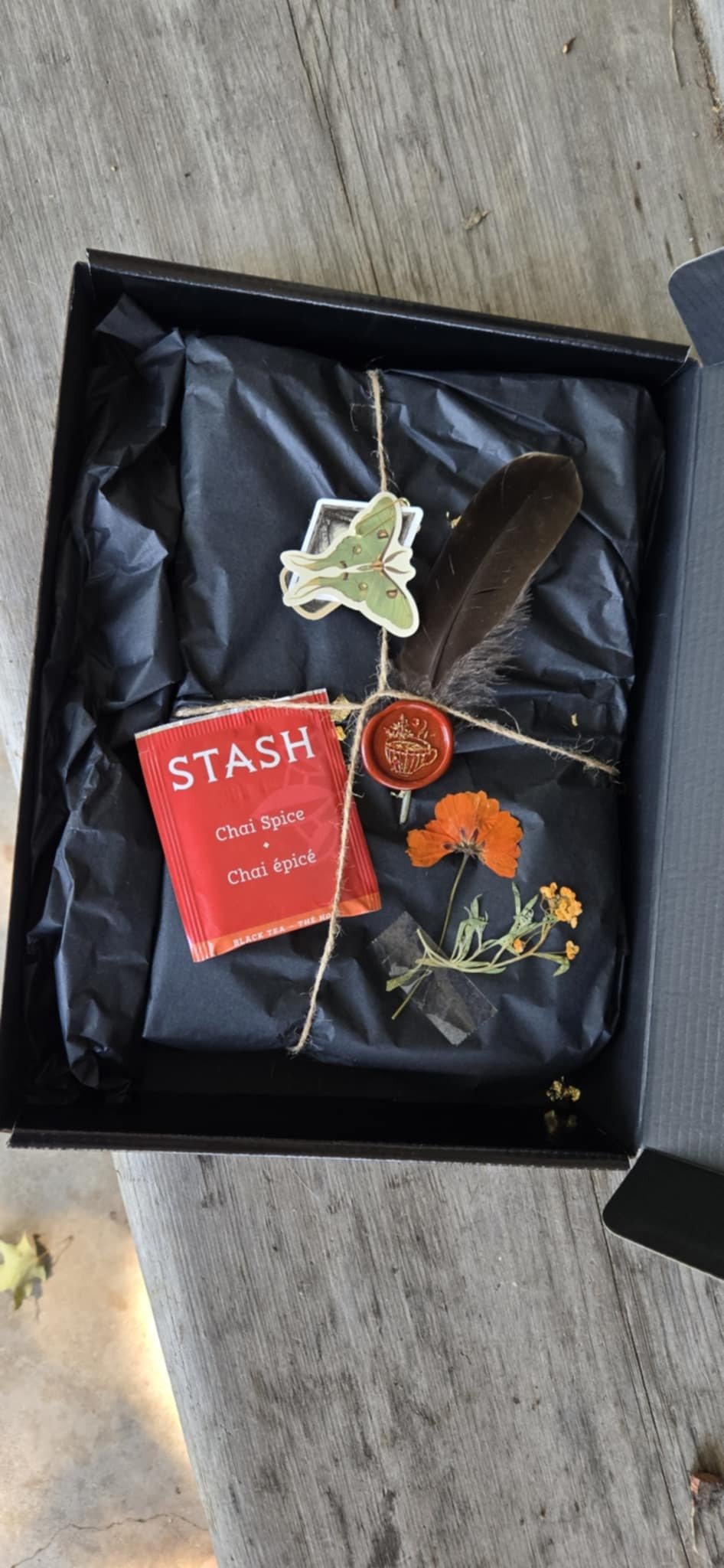 Get yourself a decadant spooky book box to start your spooky season off right! Includes a signed paperback book + lots of other seasonally appropriate extras!